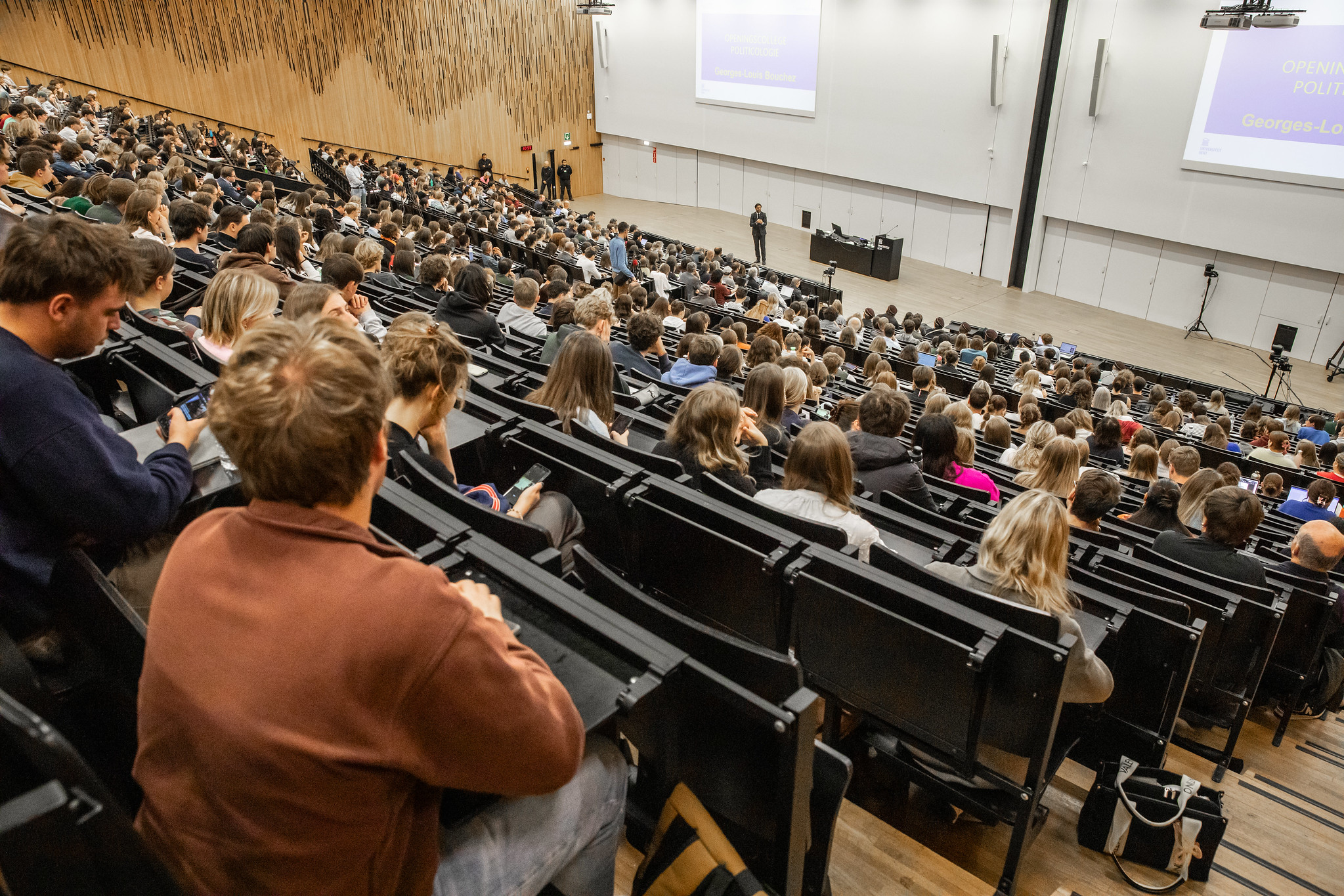 Met 850 waren ze. De studenten politieke en sociale wetenschappen van professor Carl Devos die naar het openingscollege van Georges-Louis Bouchez kwamen luisteren in de Universiteit van Gent. De voorzitter legde hen uit hoe de MR een echte volkspartij van 30% is geworden.